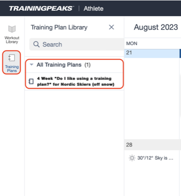 If you don’t already have a TrainingPeaks account, the app will help you set one up when you buy the plan. A Basic Athlete account is free and that’s all you need. After purchase you will have the option to apply the plan to your account right away, on a specific date, or do it later. The plan is always available in your account. To access your plan: